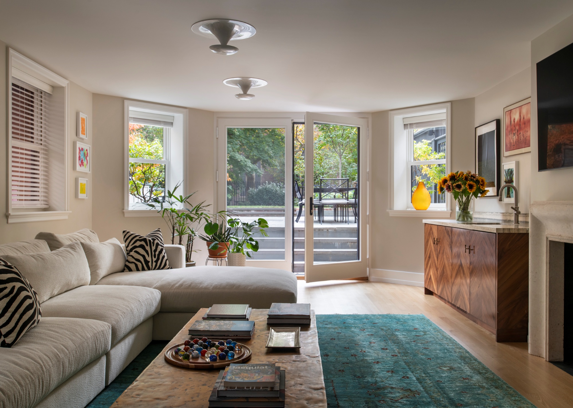 Improving indoor-outdoor access to the rear yard on the garden and parlor floors and reenvisioning the roof deck proved ample spaces for the family to enjoy their home, all year round.