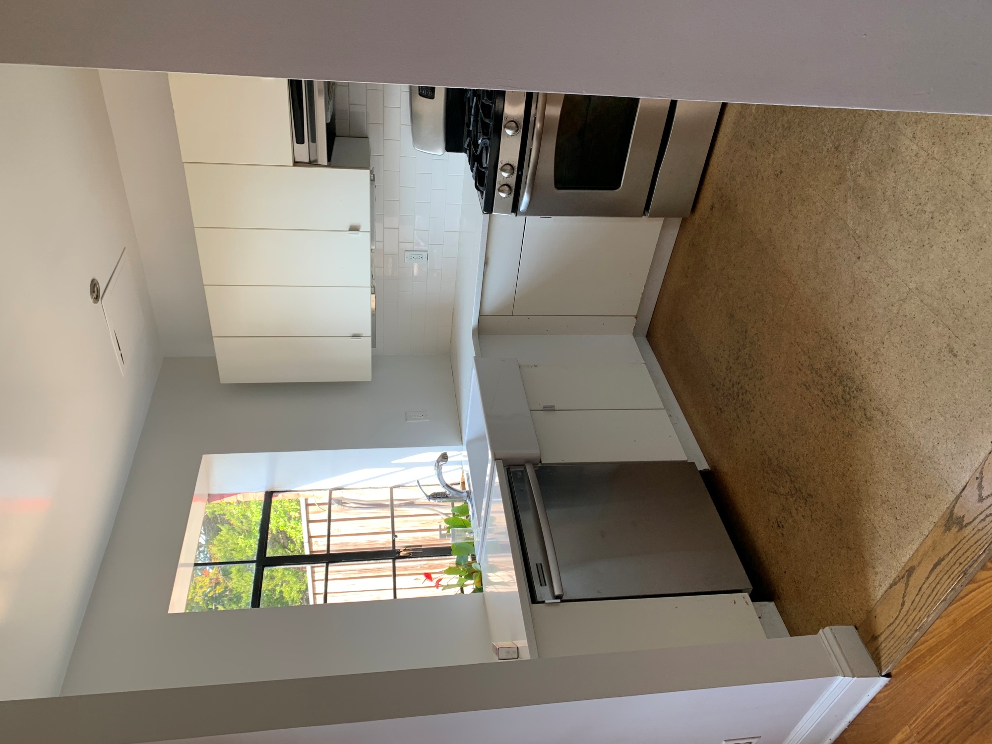 Throughout the project, we took care to respect the existing historic details, carefully considering how to blend the historic and contemporary elements in the design. The restored leaded glass windows in the bay and hallway are a nod to the building's history in the modern, bright kitchen.